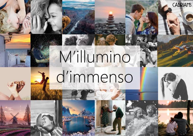 E se le parole “M’ILLUMINO D’IMMENSO” non si riferissero a qualcosa di aulico, riservato solamente a chi si intende di poesia? Se ognuno potesse trovare nella vita di tutti i giorni qualcosa che lo faccia illuminare d’immenso?