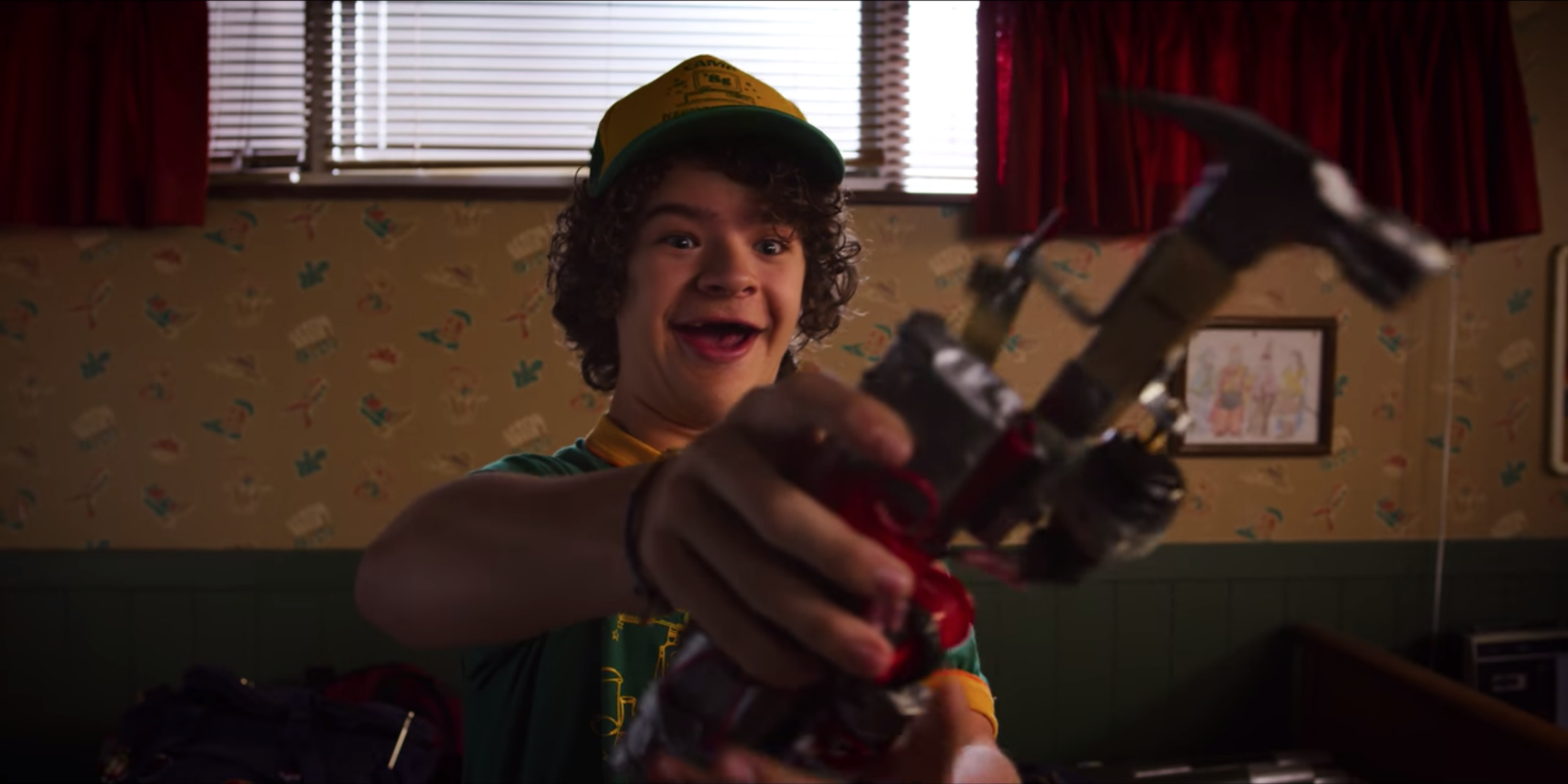 Quando Dustin (Gaten Matarazzo) torna in città dopo un mese trascorso presso un campo estivo, si mostra particolarmente entusiasta nel condividere alcune delle sue nuove invenzioni con gli amici e compagni di dis-avventure. Lo slammer, tuttavia, non è completa farina del suo sacco: un martello elettrico pericolosamente simile a quello di Dustin appare in Gremlins (1984) di Joe Dante, come una delle bislacche creazioni di Randall Peltzer (Hoyt Axton). Considerato che un peluche di Gizmo si può intravedere nel caos della fiera durante l’episodio sette (The Bite) e che il film di Dante, seguendo la linea temporale di Stranger Things, è uscito appena un anno prima rispetto agli eventi di questa stagione, c’è da pensare che quello di Dustin sia un tentativo piuttosto “nerd” di ri-creare l’invenzione vista sul grande schermo.