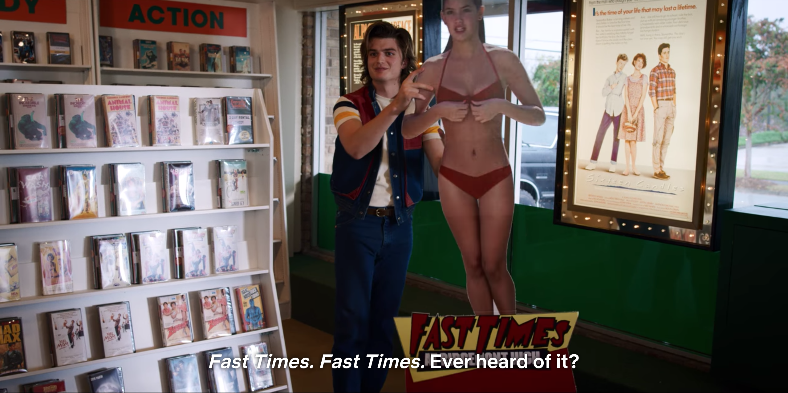 Sviscerando la prima puntata, è difficile considerare una coincidenza la scelta di evidenziare al ralenti la trionfale entrata in piscina di Billy (Dacre Montgomery) tramite l’uso di Moving in Stereo dei Cars. La canzone, non a caso, appare in una scena molto simile in Fast Times at Ridgemont High, pellicola del 1982 diretta da Amy Heckerling. Precursore dei film adolescenziali del cosiddetto Brat Pack di John Hughes, il film è tratto proprio dal debutto letterario di Cameron Crowe e si configura come reportage irriverente della vita di alcuni studenti del liceo. In quel caso, il ralenti serviva a marcare la fantasia sessuale di Brad Hamilton (Judge Reinhold) nei confronti di Linda Barrett (Phoebe Cates) dopo averla vista in bikini. In Stranger Things, Billy, che è impegnato a vestire il ruolo di bagnino presso la piscina pubblica di Hawkins, diventa similmente oggetto delle fantasie delle donne di mezza età che frequentano il luogo in cerca delle sue attenzioni. I rimandi a Fast Times at Ridgemont High non finiscono qui: quando, nella stessa puntata, Dustin parla della sua nuova ragazza, Suzie, la descrive come “più sexy di Phoebe Cates”, mentre la gelateria Scoops Ahoy, con le sue divise a tema marinaresco, diventa un’esplicita imitazione di Captain Hook Fish and Chips, il negozio in cui è impiegato Brad in Fast Times. Neanche a dirlo, Steve (Joe Keery) urterà il cartonato di Phoebe Cates nel finale di stagione, all’interno del negozio di videonoleggio.