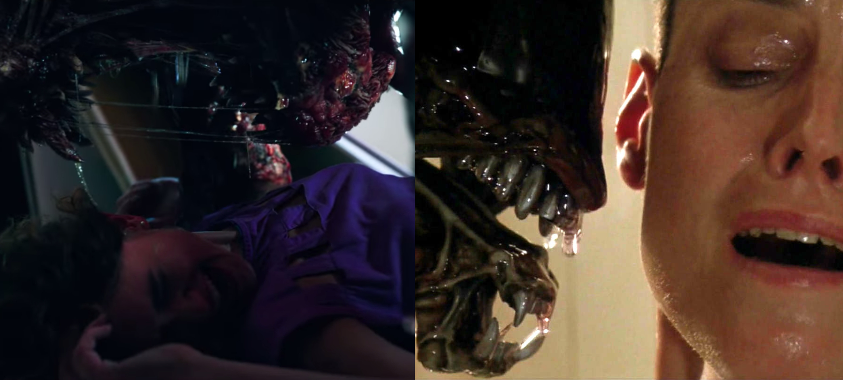 Tuttavia, è indubbio che il Mind Flayer tragga ispirazione da un altro essere vieppiù iconico: lo xenomorfo di Alien. È proprio una scena di questa stagione ad ammiccare grottescamente alla saga horror e sci-fi per eccellenza. Quando, nell’episodio sei (E Pluribus Unum), il Mind Flayer costringe Nancy (Natalia Dyer) in un angolo, l’incontro-scontro ricalca il contatto più “intimo” di Alien³, durante il quale l’alieno spalanca la bocca verso un’atterrita Sigourney Weaver.