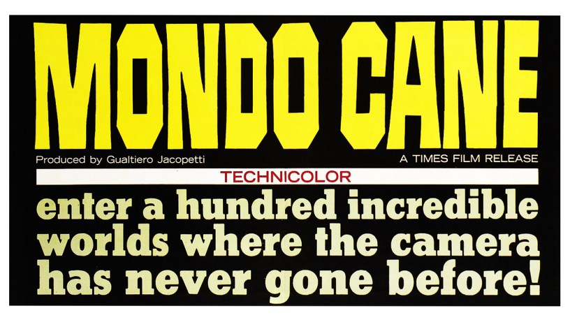 “Mondo cane!” è la perfetta esclamazione per descrivere la reazione dello spettatore di fronte ai cosiddetti shockumentary o documentari-shock degli anni ‘60 che, secondo la logica del cinema d’exploitation, rompono i tabù mostrando senza censura avvenimenti fuori dall’ordinario, curiose tradizioni culturali, usi e costumi esotici rispetto alle convenzioni occidentali.
