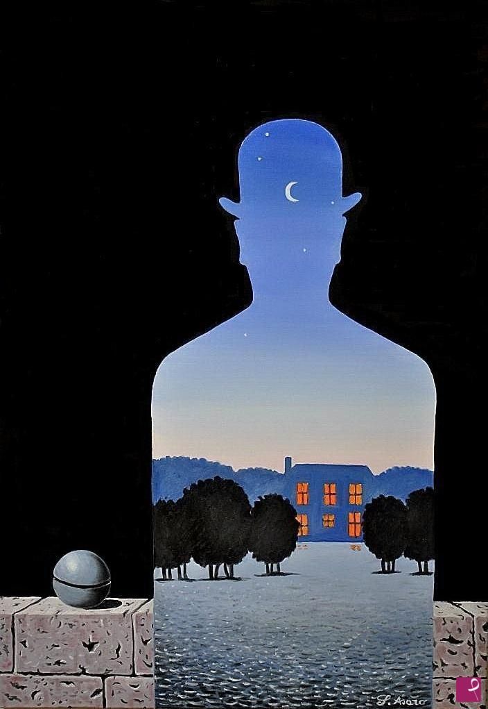 René Magritte (Lessines, 21 novembre 1898 – Bruxelles, 15 agosto 1967), noto pittore belga, fu tra i massimi esponenti del Surrealismo, corrente artistica d’avanguardia, nata in Francia dopo la Prima guerra mondiale. Il pittore, inizialmente influenzato da Cubismo e Futurismo, fece propria la tecnica basata sul trompe l’oeil, genere pittorico che invita l’occhio dell’osservatore a considerare tridimensionale e tangibile un’immagine che, in realtà, viene riportata su una superficie bidimensionale. L’artista fu definito saboteur tranquille per la sua straordinaria capacità di insinuare dubbi sul reale attraverso la rappresentazione del reale stesso, al fine di mostrarne il “mistero indefinibile”.