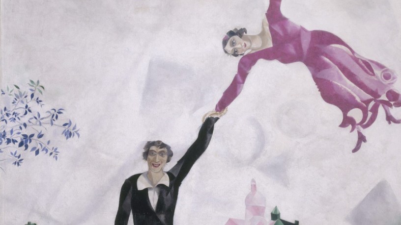 Marc Chagall (Lezna, 7 luglio 1887 – Saint-Paul-de-Vence, 28 marzo 1985) fu un noto pittore russo neutralizzato francese. Di origine ebraica, fu uno dei massimi esponenti del Simbolismo, e iniziò la sua carriera artistica come ritoccatore nella bottega di due fotografi, ma di malavoglia, motivo per cui si trasferì presto a San Pietroburgo, dove frequentò l’Accademia Russa di Belle Arti: ciò gli permise di costruirsi una buona fama da artista, motivo per cui si traferì, poi, a Parigi, nel 1910. Nell’anno precedente, quando era ancora a San Pietroburgo, conobbe la moglie Bella, la protagonista del quadro analizzato, “La passeggiata”.