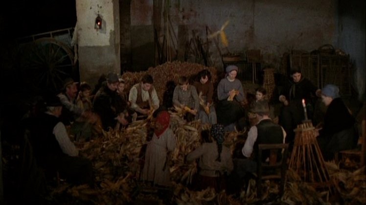 Così il regista pare richiamare noi spettatori al caldo di una stalla e, proprio come il “Batistì” protagonista del film, farci sedere attorno a sé per ripararci dal gelo invernale raccontandoci una storia lontana nel tempo e nello spazio, ma tremendamente vicina per l’universalità dei conflitti illustrati. In questo modo, sì è ben presto assorbiti da una realtà arcaica, in cui la società è ridotta ai minimi termini e dove la lotta quotidiana riguarda la propria stessa sopravvivenza. Un microcosmo racchiuso tra le mura di una cascina nella bassa bergamasca, animata dalle essenziali attività dei contadini che si adoperano tanto per sé stessi quanto per il sostentamento di un padrone senza nome. Olmi delinea un contesto in cui ogni gesto assume un valore vitale, la minima azione viene investita di significati ulteriori, facendosi veicolo degli affetti che regolano i rapporti tra i personaggi. Un mondo scandito dalla successione di atti consueti, ma in cui anche il timido augurio di una “buona sera” può riecheggiare con la forza straripante di una dichiarazione d’amore.