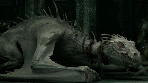 I nostri tre, mossi dall’unico obiettivo di distruggere qualsiasi cosa mai venuta in contatto con l’anima di Tom Riddle, non se lo fanno dire due volte e con poche gocce di Pozione Polisucco (che nel secondo capitolo era una piaga da preparare e ora la trovi praticamente al distributore di bibite) ecco che Hermione si trasforma in Madame Lestrange, mentre Ron si attacca un pizzetto finto (bello sforzo) e Unci-Unci cavalca Harry sotto il mantello dell’invisibilità. Peccato che Hermione sia bravissima sui libri ma che fatichi ad entrare nel personaggio, smerdandosi dopo mezzo secondo di permanenza a Nocturn Alley. E se lo capisce un cavernicolo figuriamoci gli scaltri folletti della Gringott, che nasano puzza di marcio al primo passo di Hermione nell’edificio. Ma Harry spiazza tutti con la maledizione imperio (ma non era imperdonabile?) sul direttore della banca, che gli permetterà di mettere mano sulla coppa di Tassorosso, horcrux number four, lasciando in cambio a Unci-Unci la spada di Grifondoro, oggetto che, come oramai sanno anche le nostre nonne, non può essere posseduto da alcuno perché si diverte a sparire di frequente.