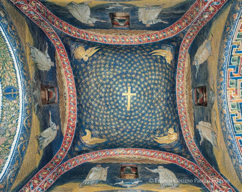 Per quanto piccolo possa apparire, semplice e spoglio, il mausoleo dell’Augusta Galla Placidia fa impallidire con i suoi ori, i suoi cieli azzurri, tutte le meraviglie che l’uomo potrebbe sognare. Un luogo in cui il tempo si blocca, in cui veniamo attirati verso un meraviglioso cielo stellato.