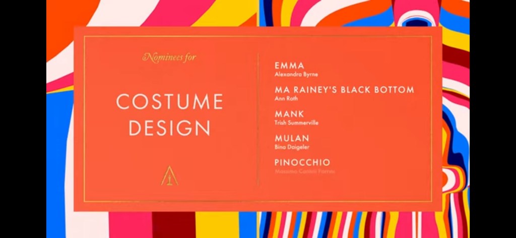 Il cinema italiano raccoglie tre nomination, grazie alle categorie tecniche Miglior Trucco e acconciatura e Migliori costumi per Pinocchio di Matteo Garrone e come Miglior canzone per “Io sì”, composta da Diane Warren e Laura Pausini. Delusione invece per Notturno di Giafranco Rosi, già escluso dalla shortlist per Miglior film Internazionale (scelta poco lungimirante da parte dei selezionatori italiani) e atteso nella categoria Miglior Documentario, dove però non riesce a trovare posto.