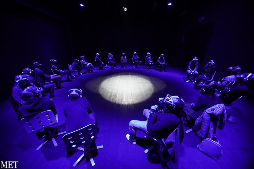 Il titolo già dichiara l’intento: mettere in scena uno spettacolo in realtà virtuale. Una tecnologia che, uscita dalle sale gioco, sta progressivamente perdendo l’etichetta di novità e venendo impiegata nel privato, nei musei, nei cinema e adesso anche nei teatri (ha debuttato recentemente, alla Pergola, lo spettacolo Così è (o mi pare) di e con Elio Germano). Una tecnologia che potenzialmente mette in condizione lo spettatore di sperimentare una sorta di onniscienza all’interno dello spettacolo. In questa particolare circostanza, però, ciò non avviene.