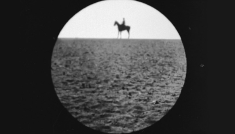 Spari. Un proiettile attraversa il Novecento grazie a un montaggio cinematografico. Questi suoni, come dicevamo, partono da un film che mostra anni precedenti a quelli da cui è partito il rumore, volano toccando la propria epoca di provenienza e con uno shock arrivano a noi, alle nostre immagini, trasportandoci in un tempo che è l’oggi, in un luogo che è ancora occupato, cambiano soltanto i costumi di chi opprime. Ci pensa una tromba che chiama l’adunata a ripescarci dall’abisso, per tirare un breve, ingiusto e inutile sospiro di sollievo. Altro punto di vista: un cannocchiale; lo vediamo e ci vediamo attraverso. “Cosa ci viene in mente?”, sentiamo chiedersi. “Sembra una luce lontana che riflette su qualcosa, da una montagna, un segnale o un messaggio per qualcuno forse”. Siamo forse noi i destinatari di quel messaggio, invitati a guardare dentro un occhio dell’Impero Britannico e a doverci mettere finalmente in un punto di vista scomodo? Sono voci di chi sta guardando il filmato per la prima volta, come noi, al sicuro, e che si domandano se non ci sia una trama, una storia, dietro queste immagini. Ma la storia non c’è, sono solo giochi.