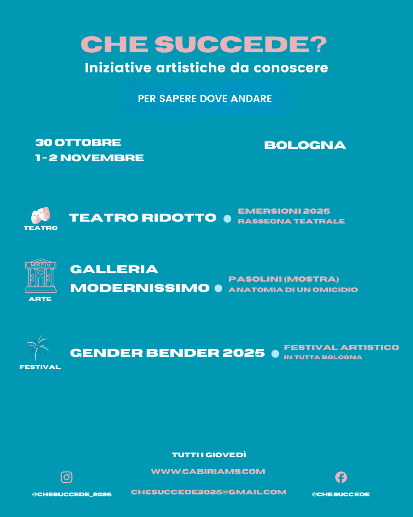Benvenute e benvenuti al riepilogo settimanale di “Che succede?”. Questa settimana, la cultura a Bologna si muove tra l’indagine storica, la scoperta di nuove voci teatrali e la celebrazione della diversità. Ecco i tre eventi imperdibili, con tutti i dettagli e i link utili per non perdersi nulla.