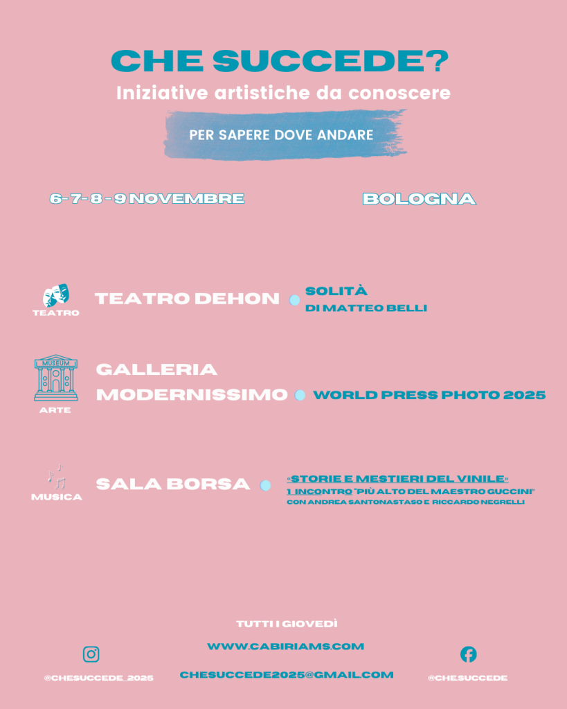 Il nostro viaggio per questo weekend (6, 7, 8 e 9 novembre) resta a Bologna, tra teatro, mostre di livello internazionale e omaggi alla storia musicale.