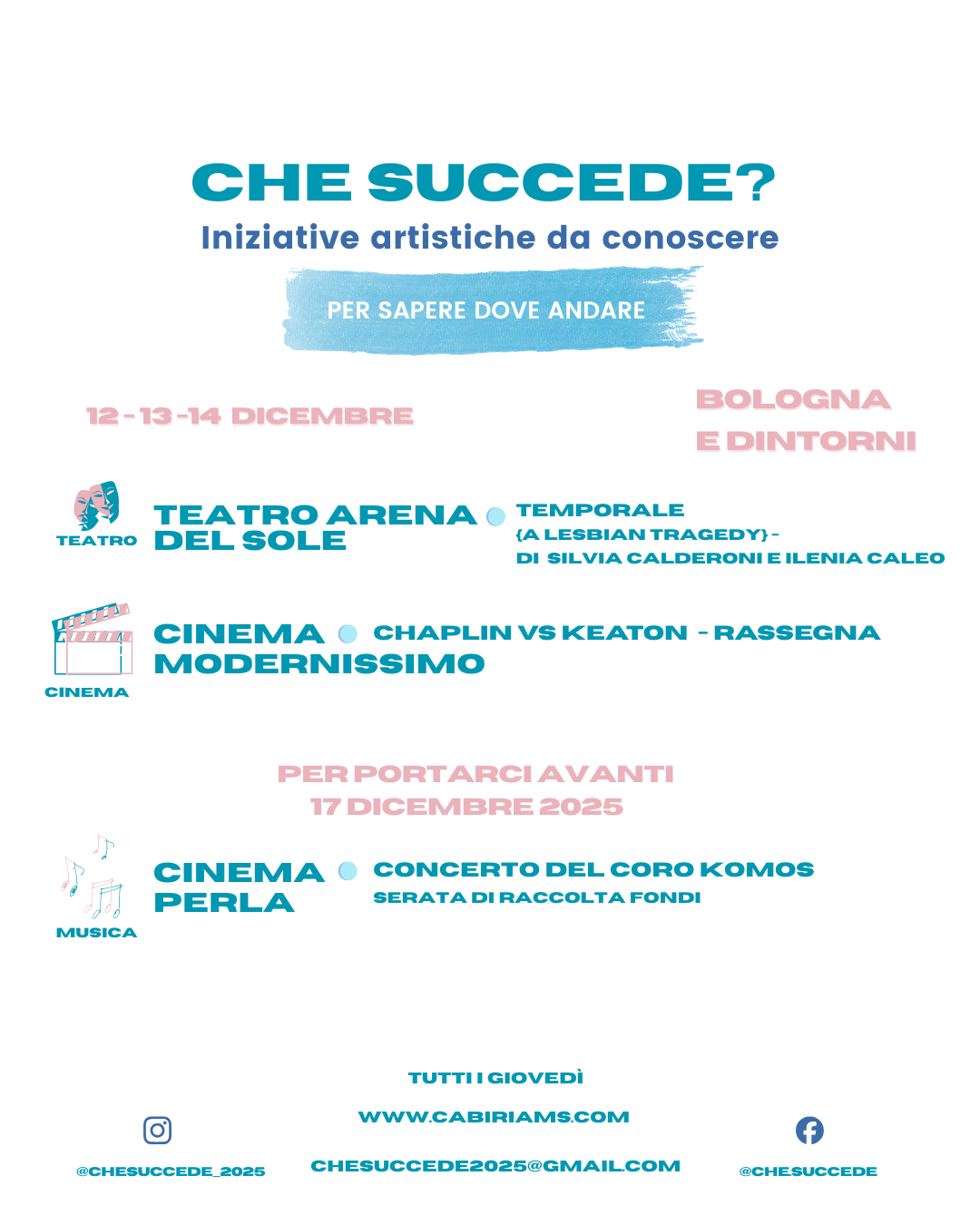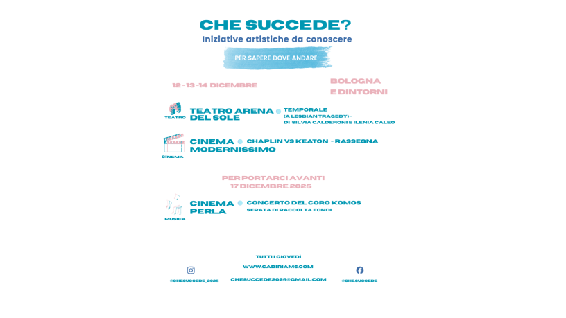 #CheSuccede #BolognaEventi #TeatroBologna #Cineteca #ChaplinVsKeaton #ArenaDelSole #CulturaBologna #WeekendInArte