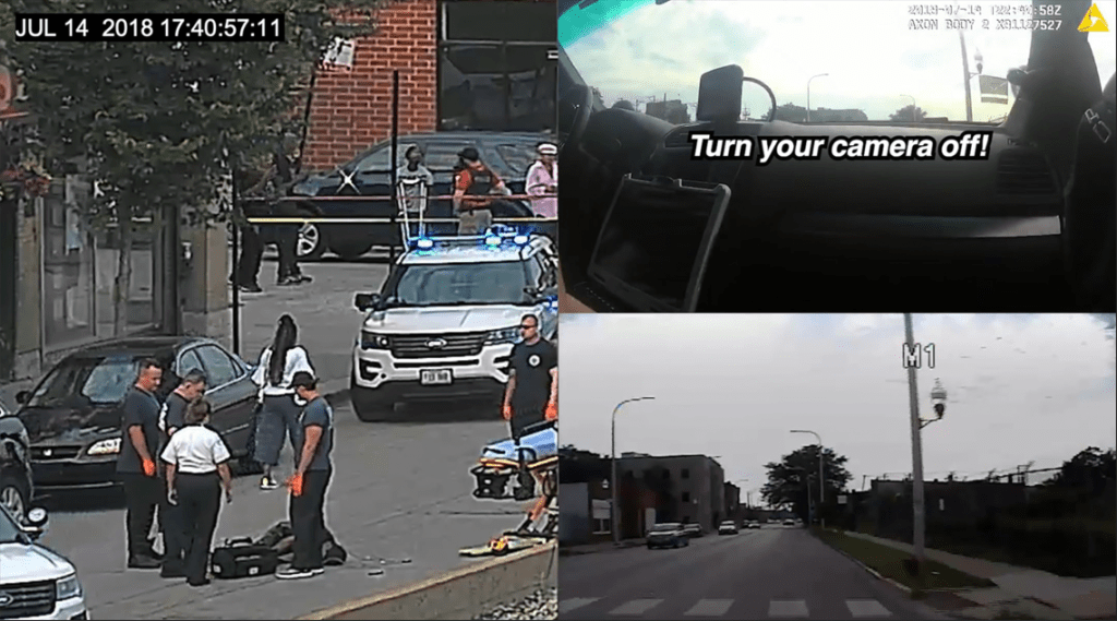 Bill Morrison passa dall’estetica del decadimento materico della pellicola che lo ha reso riconoscibile con Decasia (2002), alle riprese grezze del digitale. Il regista intreccia i punti di vista, moltiplicando il momento presente attraverso la composizione di split screen sincroni, per condurre un’indagine sui pochi minuti che hanno portato all’uccisione nel 2018 di Harith “Snoop” Augustus, un barbiere di Chicago, da parte dell’agente Dillan Halley.